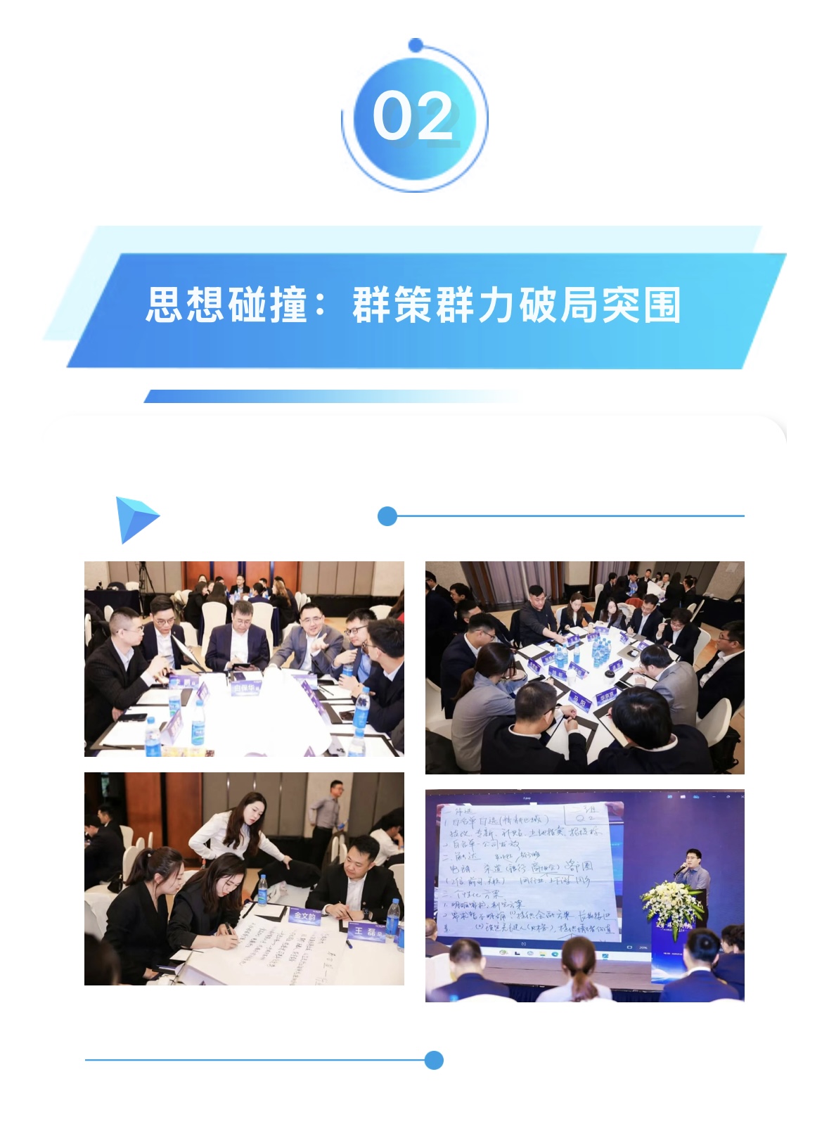 在“渠道深耕”“精準獲客”“收益提升”“差異化破局”等核心議題的研討環(huán)節(jié),現(xiàn)場氛圍熱烈非凡,團隊成員分組討論,打破區(qū)域與部門的劃分,以務(wù)實實戰(zhàn)的視角全身心投入到頭腦風(fēng)暴之中。從客戶畫像建模到同業(yè)競爭策略,從資源整合路徑到風(fēng)控前置方案,豐富的實操經(jīng)驗在團隊間充分流動、相互賦能,全方位推動團隊成長,為業(yè)務(wù)的發(fā)展補充了源源不斷的新動能。